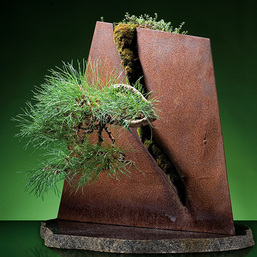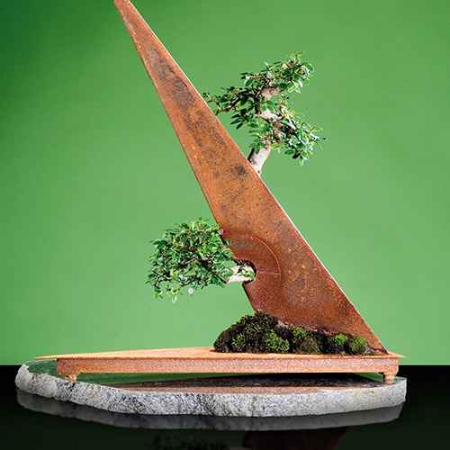 In 2003 heb ik zes stalen objecten gemaakt waaruit bomen groeien, geen bijzondere Bonsai, maar de objecten waar ze in stonden hebben tot grote discussies geleid in de bonsaiwereld.