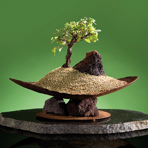Bonsai is een eeuwenoude kunstvorm waarin heel veel aspecten van kunst gecombineerd worden tot één gezamenlijk opstelling.