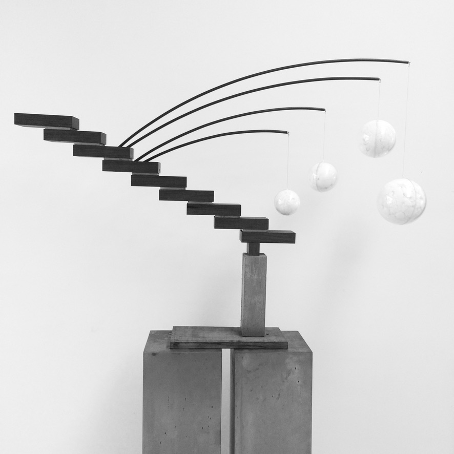 Bij deze objecten draait het ook om balans. De stapeling is onderling verbonden aan elkaar maar staat los, in evenwicht, op zijn sokkel.