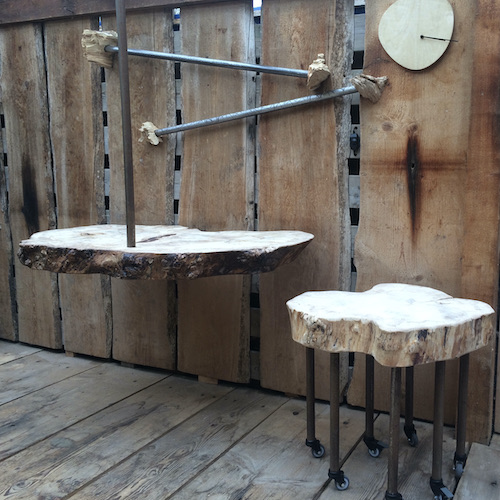 Naast het creëren van kunstwerken houdt ik me al heel lang bezig met het maken van gebruiksvoorwerpen zoals meubels, lampen en interieurs. Zo heb ik o.a. het interieur van mijn bungalow en van mijn camper bedacht en veelal zelf gemaakt. Alles van zoveel mogelijk natuurlijke materialen en organische vormen.